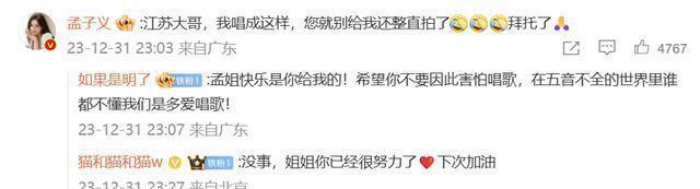 1月1日,孟子义在江苏卫视跨年演唱会的舞台上和其他几位歌手沿途深情合营周华健老诚演唱了歌曲,有关词在唱歌的经由中,却出现了一段小插曲,因为是真唱的原因,不少不雅众皆听出了孟子义出现了跑调破音的情况。